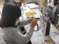 1年生図工の授業はクリスマスリースづくりです。アサガオの茎で作ったリースにリボンや松ぼっくり、白やピンクの綿、鈴などの飾りをホットボンドやボンドで手際よくきれいに装飾しています。完成した作品をぜひ家で飾って楽しいクリスマスを過ごしてほしいと思います。