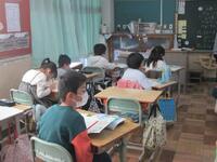 2年生国語の授業は、水族館の飼育員さんの仕事は毎日決まっていることだけではないので、その日だけしたことが分かる文章とその時の思いが分かる文章の2つを書き出しています。しっかりと読み込んで文章を見付けていました。