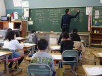 1年生の算数の授業の様子です。1年生もさっそく学習活動に入っていきました。まずは、絵を見ながらいくつあるかなと数えるところからのスタートです。