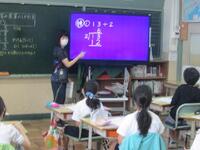 4年生算数の授業の様子です。13÷2や37÷5などの割り算の筆算を学習しています。商を立て、かけて、引いて、あまりまで求めていきます。みんな理解が速くどんどん問題を解いていきました。