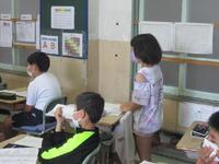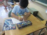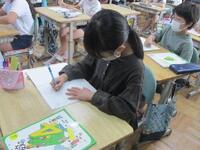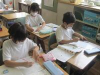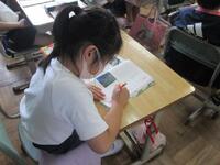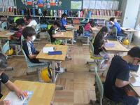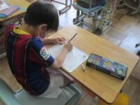2年生国語の授業の様子です。漢字テストに取り組んでいますが、「数える」「記す」「回る」など、送り仮名も間違えずにしっかりと書けていました。