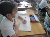 5年生国語の授業の様子です。「東京スカイツリーの秘密」の要旨をつくる事前段階です。要旨とは中心となる事項を織り交ぜながら筆者の意見を分かりやすくまとめたものです。双括型の文章を200字以内でまとめるのはとても難しそうです。