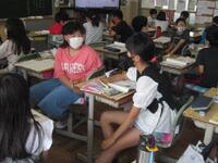 2年生国語の授業の様子です。「ホタルの一生」という説明文について学習しています。説明文には作者の疑問(問い)が隠されています。問いには「~でしょうか。」という文末があるようです。