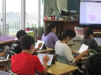 5年生国語の授業は、祖先が手本として読んだ文章(古典)に触れる学習です。古典は「とうときこと」「をかしきこと」「おそろしきこと」「あはれなること」「きたなきこと」などが書かれていますが、「とうときこと」や「をかしきこと」はどんなことなのかを予想して考えています。