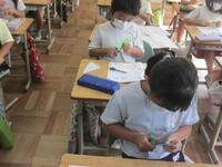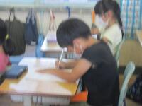 2年生国語の授業の様子です。文集「わきみず」の中から先生がいくつかの詩を読みました。詩は短い文の中でいかに自分の気持ちを端的に表すかがポイントです。題名を決めてからそれぞれの想いを書き出しました。