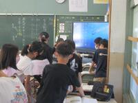 6年生算数の授業の様子です。鹿児島県にある池田湖の面積がどれくらいなのか、おおよその面積を計算しています。円の公式や台形の公式を使い、実際にどちらの方が近いかを検証しています。