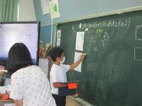 4年生算数の授業の様子です。6270÷38をどのように概算するか追究しています。計算しやすいように6270を6000に、38を40に、そしてそれぞれの数を10で割って(0を1つ取って)600÷4で計算するのがベストではないかという考えに至りました。