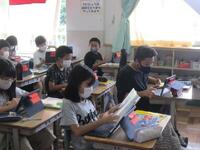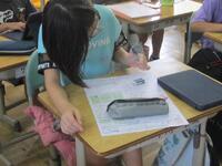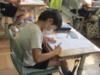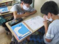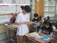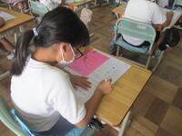 2年生の算数は水のかさの単元テストに取り組んでいます。今までの学習を生かして水のかさのいろいろな問題を解いています。みんなとても集中しています。