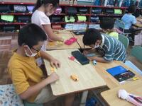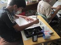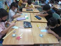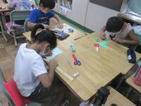 2年生の生活は動くおもちゃ「ころころころん」の製作をしています。ビー玉が斜面で転がるように長さを正確に測って設計図を描いて折り曲げていきます。ミリ単位の作業にみんな真剣です。