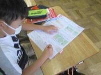 3年生の算数は長さや道のりの単元テストに取り組んでいます。まずは自分の力で、先生が採点した後に、できなかったところを解きなおしたり、友達に聞いたりして理解を深めています。