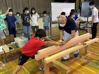 6年生は、建物の善し悪しを左右する重要な作業、「木材の表面をカンナで削ること」を体験させていただきました。匠が削ると、サランラップの10分の1の薄さで削れるそうです。驚きですね。