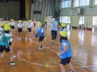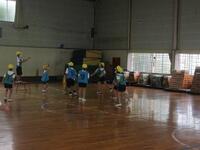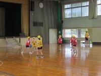 3年生体育の授業の様子です。ポートボールのゲームに初挑戦です。ボールをもらえるようにスペースに動きながらゴールを目指しています。ゴールマンにボールが渡ると得点となり、チームは大喜びです。