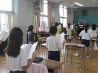 4年生音楽の授業の様子です。「pピアノ」「mpメゾピアノ」「mfメゾフォルテ」「fフォルテ」の大きさを確認をし、発声練習をしてから強弱に注意して「ゆかいに歩けば」を楽しそうに歌いました。