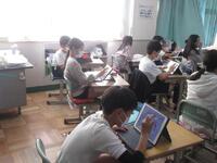 2年生国語の授業は、「学習祭の準備」という題で作文を書いています。文章をたいやきに例えて、あたま(はじめ)、おなか(中)、おわり(しっぽ)の構成で書いています。おなかのあんこがたっぷりになるように詳しくたくさん書くことがポイントだということを再確認しました。