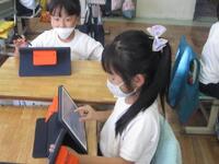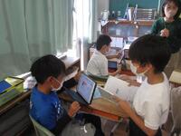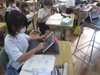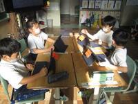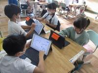 5年生社会の授業は、工業製品の輸送について学習しています。工業製品はトラックやコンテナ船、鉄道や航空機で輸送されますが、それぞれにはどのようなメリットとデメリットがあるかを資料集やネット検索から調べて自分の考えをまとめています。