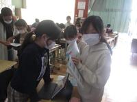 5年生の家庭科では、ミシンを使ってエプロンを製作しています。今日のミッションは、1脇を縫う、2裾を縫う、3ひもを通すところを縫うの3つが先生から出されました。みんなミシンの針に集中して無言で縫い続けていました。