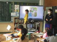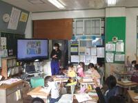 1年生国語の授業の様子です。分かりやすい文を作る方法を学習しています。絵を見て、誰が(何が)、どうする(どうなる)の形に当てはめていくと分かりやすい文になりますね。文の間に(~を)を入れるともっと詳しい文が作れそうです。