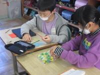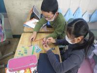 10月末から教育実習をしている天野教生が3年1組で研究授業を行いました。長さの違う色のストローを使って、ペアで様々な三角形を作っています。写真を撮った後に分類しましたが、ストローの長さによって3つのグループに分けられることに気付きました。これから三角形の性質について深く学んでいきます。
