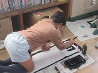 3年生書写の授業の様子です。今日は初めて床に正座して本格的に書き初めの練習をしています。太筆の使い方にも慣れ、大きくバランスよく書けていました。みんな気持ちを落ち着かせ、一文字一文字丁寧に書き、集中して活動していました。ぜひ冬休みも挑戦してみてください。