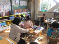 6年生が冬休みに読む本を選んでいます。期間限定で大岡信さんの書籍が展示されていますが、興味を持って手にしている子もいます。冬休み中にたくさんの本に触れ、心を豊かにしてほしいと思います。