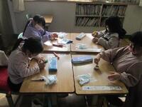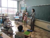 1年生国語の授業は、「おてつだいをしたよ」の単元です。家でどんなお手伝いをしているかについて、「はじめに」「つぎに」「それから」「さいごに」の順序が分かる言葉を使って、具体的にやったことと、その時の思いや感想を表にまとめています。お手伝いの内容が分かるように書けるかな。