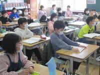 2年生は1組、2組の合同音楽です。6年生を送る会で披露する「11匹の猫」の練習に励んでいます。踊りやセリフ、歌などをまじえ、劇としたオペレッタですが、一人一人がとても夢中になって取り組んでいるので、楽しそうです。6年生がきっと楽しみにしていると思います。