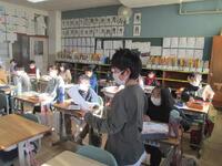 3年生国語の授業は、「写真が動き出す」の単元です。写真の前と後の出来事や二人の会話内容、人物の名前なども想像してオリジナルの物語を作り、代表者が発表しました。次はみんなそれぞれ違う写真を選択して物語を作っていきます。