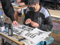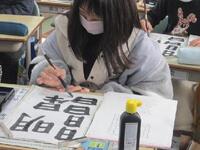 4年生書写の授業の様子です。「明星」という字ですが、「折れ」の部分が多いので、その部分を重点的に練習しています。筆を一度止めて力を入れなおしてから書くと上手に書けるようです。かご書きで感覚をつかんでいました。