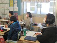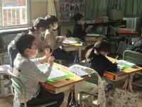 3年生の体育は大縄跳びの練習です。10回前後までは何とかリズムよく跳べますが、なかなか記録が伸びません。2チームに分かれて作戦タイムを設け話し合っています。問題点を出し合い、自分たちで解決しようとする姿は立派です。今後さらなる記録向上が見られると思います。