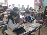 1年生国語の授業は、「めだかのぼうけん」の単元です。めだかがどんな魚なのかを読み解いています。からだは小さな魚だけど、ひれが大きくて泳ぎが上手な魚だということも分かりました。ひれがどの部分かも写真を確認して理解できました。