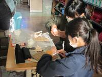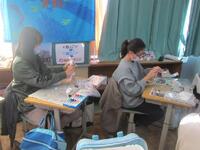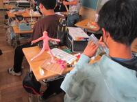 6年生図工の授業の様子です。「未来の自分」の制作が終盤に差し掛かっています。粘土に様々な色の絵の具を塗りこみ、骨組みに肉付けをしていっています。少しずつ粘土を着けながら体のバランスを整えています。