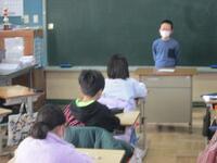 3年生は冬休みの出来事についてみんなの前で発表しています。クリスマスツリーをお母さんと片づけたこと、祖母の家に行って遊んだこと、ボウリングに行って楽しんだことなど、みんなそれぞれ充実した冬休みを過ごしたようです。