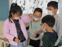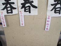 3年生以上の教室前には、書き初め作品が掲示されています。6年生の作品は「出発の春」です。卒業を前にした6年生にぴったりの言葉です。6年生は、「おみごとで賞」「力強いで賞」「芸術的で賞」「「ていねいで賞」「がんばったで賞」など、自分の作品に似合う言葉を選び、受賞札を貼って作品を掲示していました。