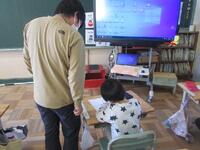 1年生は冬休みの思い出を絵日記にしています。短い冬休みでしたが、遊んだこと、お手伝いしたこと、勉強したこと、出掛けたことなど、楽しかった思い出をますいっぱいにたくさん文章を書いています。文章が完成したら色鉛筆で絵を描き始めました。