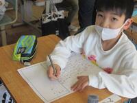 2年生の漢字テストの様子です。毎日漢字練習の宿題に頑張って取り組んでいるので、自信を持ってテストに臨んでいる子がたくさんいました。終わった後も間違いがないかどうか、丁寧に見直しを行う習慣がついてきています。