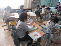 3年生国語の授業の様子です。バラバラにされた文をよく読み、文章のつながりを考えながら、並び替えています。文章は「はじめ」「なか」「おわり」で構成されているので、それにあった文をしっかりと配置できるかどうかがポイントですね。