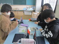 5年生家庭科の授業は、ホッとする団らんの時に食べるおやつを作る計画をしています。グループでいろいろな意見を出したり、簡単にできそうなものを探したりして決めています。時間をかけずに手軽にできるものとちょっとした飲み物もあるといいですね。