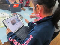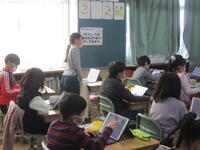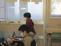 4年生算数の授業は、立方体、直方体、展開図、辺や面の関係、見取図の総まとめとして、総合問題に挑戦しています。まずは自力で解いていますが、分からないところは先生が丁寧に指導しています。ゆっくりとひとつずつ考えていくと解答できそうですね。