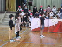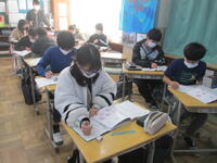1年生は学年全体で6年生を送る会に向けての演劇を練習しています。劇もコーラスもみんな自分の役割をしっかりと果たしていました。セリフも迫力が出てきて、場面ごとの入れ替えも素早くできるように意識しています。完成度の高い発表ができそうです。