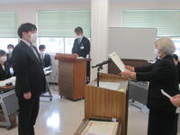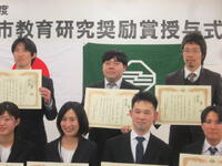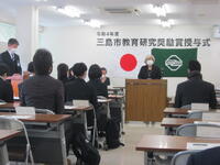2月6日に三島市教育奨励賞授与式が中央町別館で行われ、本校2年1組担任の松浦功典教諭が優良賞を受賞しました。「主体的に学習に取り組む子供の育成につながるICT機器の活用」というテーマで、授業、学級活動、委員会活動等、様々な場面で子供たちが主体的に端末を活用した実践研究です。松浦教諭は、タブレット活用のルールやマナー作成、授業での効果的な活用と紹介、ICT支援員との連携等、校内では情報担当としても力を発揮しました。今後の更なる活躍が期待されます。