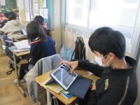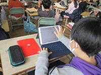 6年生社会の授業の様子です。先生から出題された3つの問題を資料集、地図帳、ネット検索で各自が調べています。「世界のランキング」という資料から見付けている子もいました。資料活用や正しい情報の検索と取捨選択など、自らの学習を高めています。