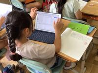 3年生がこれまでに学んだ三島の農業についてまとめるために、新聞づくりに取り組んでいました。自分で地区を決めてその地区の農業の特色をまとめたり、農作物に焦点を当てたりしてまとめていきます。1人1台端末のアプリを利用して、初めての新聞づくりの取組ですが、これまでに身に付けた技能を生かして、上手にまとめていく3年生です。