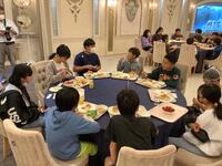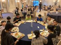 子供たちが楽しみにしていたホテルでの夕食タイムです。今日は朝からたくさん活動しているため、食も進んだようです。食べ過ぎ注意ですね。