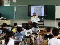 4年生の音楽の授業の様子です。リコーダーの演奏で、「風のメロディー」に取り組んでいました。