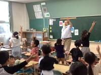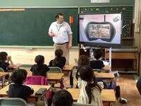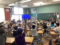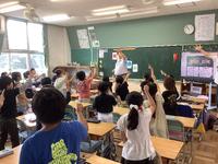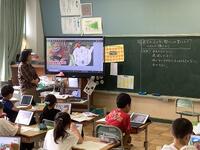 今日は、ALTの先生が自己紹介をしました。先生の趣味を聞き、迫力ある映像に子供たちは興味津々でした。