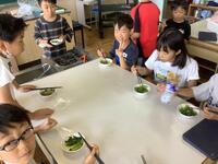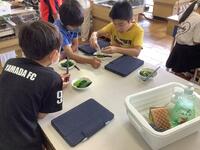 5年生「家庭科」の様子です。青菜をゆでる、調理実習です。