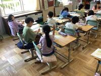2年生「国語」の様子です。お互いに作文を見合っていました。そして、良いところを伝え合う、ということをしていました。