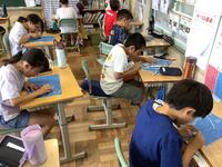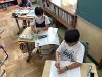 4年生の図画工作の授業の様子です。好きな生き物を描いた木版画に取り組んでいます。