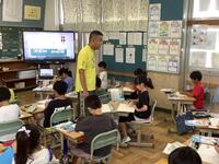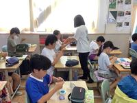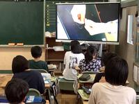 電子黒板で先生の手本を見ながら、子供たちも取り組んでいきます。最初からすぐに上手にできるわけではありませんが、繰り返し取り組む中で、少しずつ上手な玉結びができるようになっていきます。がんばってください。