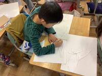 2年生の図画工作の授業の様子です。かみはんがの版をつくることに取り組んでいました。子供たちは、思い思いに自分の考えたテーマの版をつくっていきます。